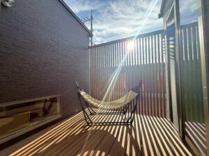 中庭ではハンモックを置いて穏やかな休日を過ごす事ができたり