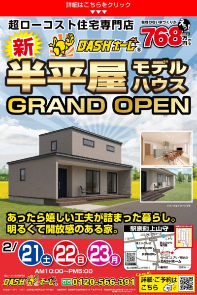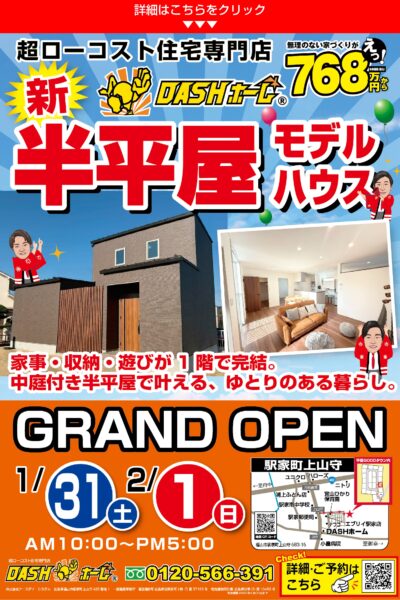 ①大好評!半平屋モデルハウス続々登場!!